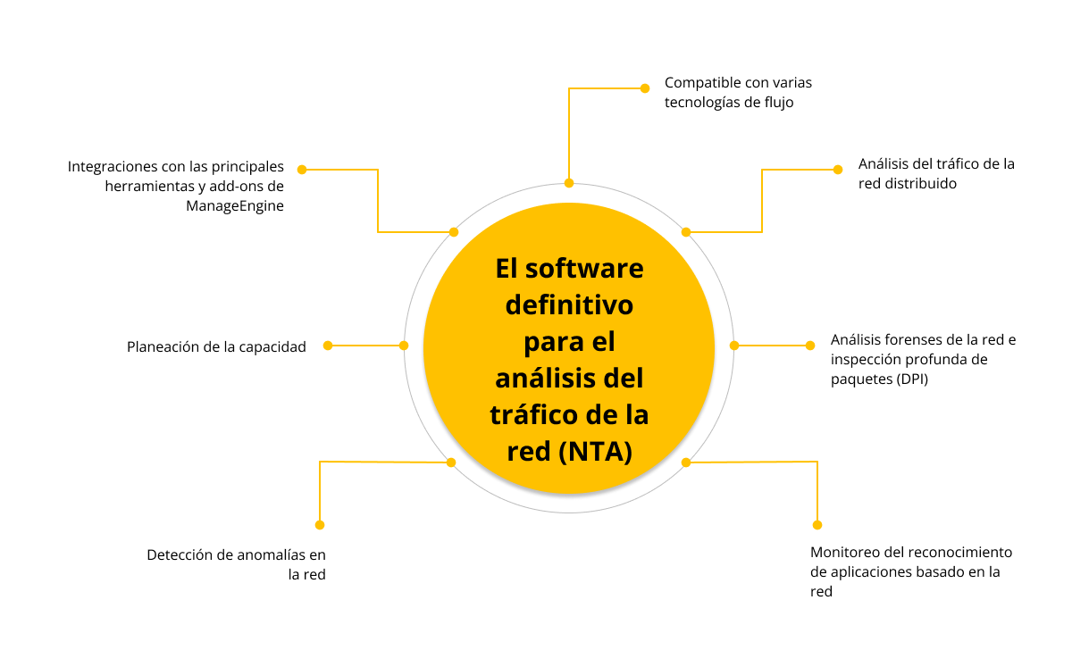 En la práctica, una buena herramienta de análisis de red debería ser capaz de: diagnosticar y corregir problemas de rendimiento, adelantarse a cuellos de botella de ancho de banda, localizar amenazas internas y externas, identificar a los mayores consumidores de tráfico, detectar conversaciones inusuales y medir disponibilidad, velocidad y calidad del servicio.