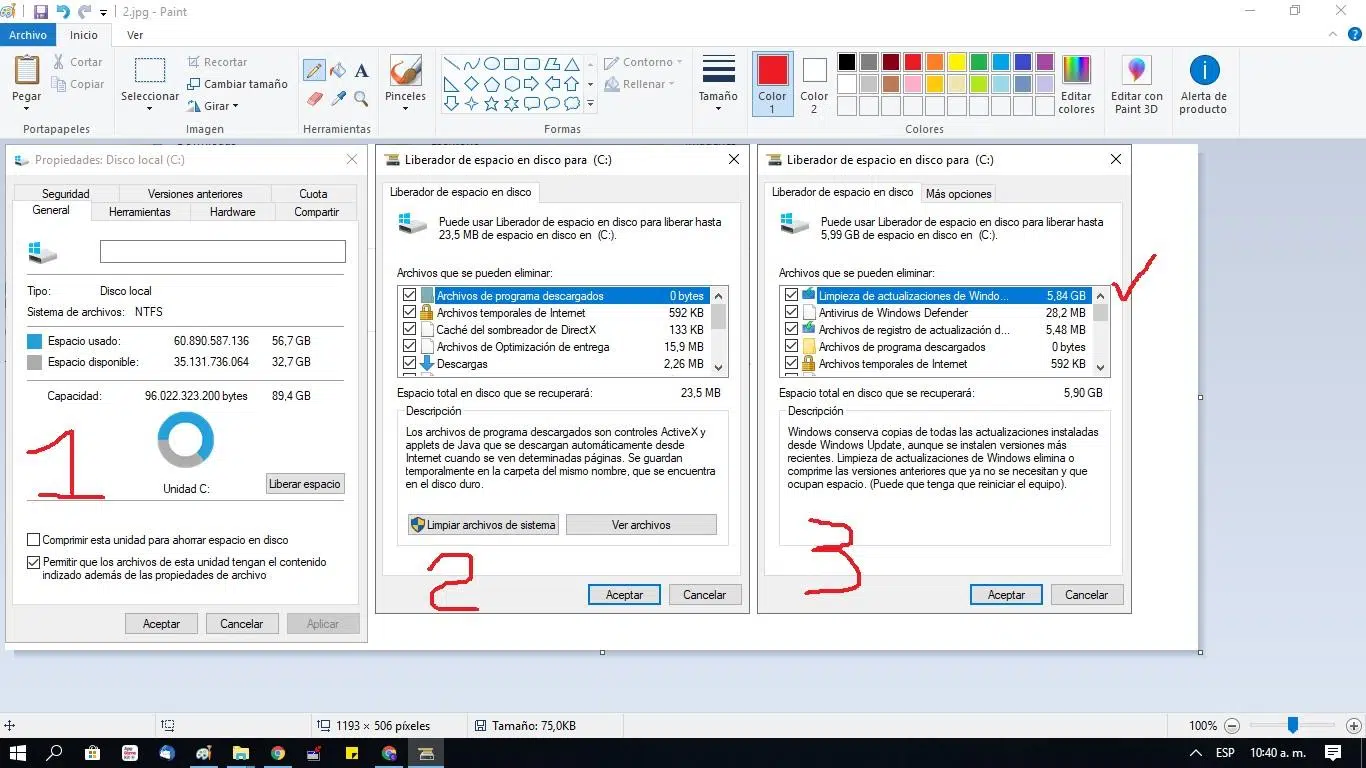 Liberador de espacio: diferencias entre Panel de control y Configuración